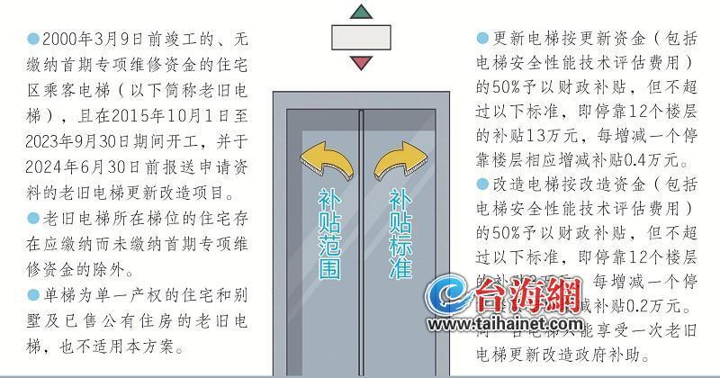 臺(tái)海網(wǎng)9月11日訊 (海峽導(dǎo)報(bào)記者 林少蓉)2020年廈門老舊電梯更新改造方案近日出爐,老舊電梯更新改造可獲50%補(bǔ)貼。 據(jù)了解,為推動(dòng)老舊電梯更新改造工作,廈門市市場(chǎng)監(jiān)督管理局、廈門市建設(shè)局、廈門市