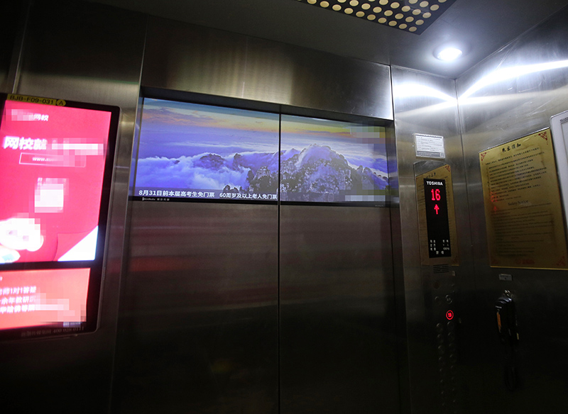 徐匯明佳苑小區(qū)一部電梯擠進六個廣告 居民不堪其擾
