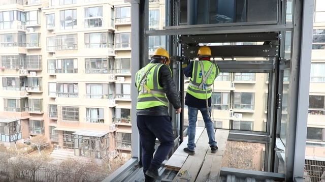 3月6日上午,記者來(lái)到了市北區(qū)福嶺嘉苑D區(qū)14號(hào)樓1單元,加裝電梯的師傅和地面建筑施工隊(duì)正在為加緊安裝一部民用電梯而忙碌著。 來(lái)到樓下,一單元的居民朱師傅和居民王女士正在樓下和施工隊(duì)溝通建設(shè)、安裝事宜