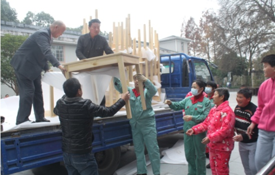“來了,來了……”12月14日當(dāng)公司的捐送物資剛開進(jìn)福利院食堂大樓的門口,就已經(jīng)圍了很多孩子,這是公司在了解到福利院現(xiàn)有的桌椅已經(jīng)使用多年,有的搖晃不穩(wěn),有的擋板缺失,有的凹凸不平,公司高度重視,作出