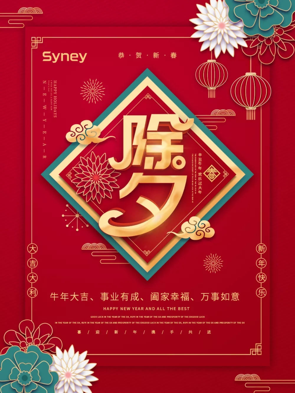 西尼機電給您拜年了!祝愿各位新的一年:“牛年大吉、事業(yè)有成、闔家幸福、萬事如意!快樂每一天,幸福每一年,健康到永遠!除夕快樂!”