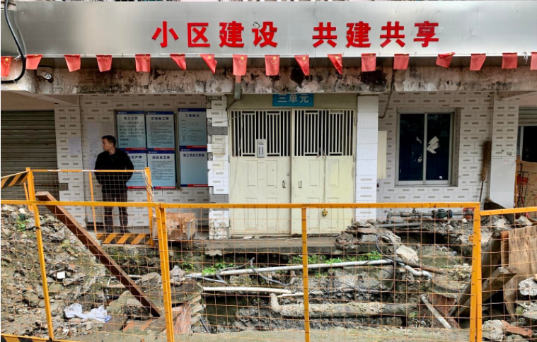 這個大坑背后,是小區(qū)懸而未決、持續(xù)多年的住改商問題。