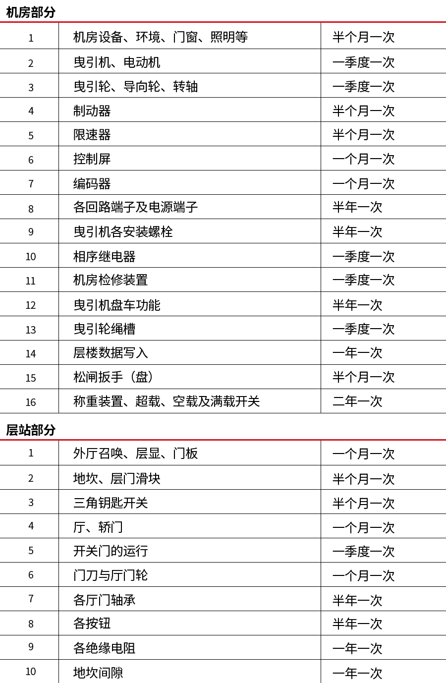 例如對于電梯非常重要的制動器(相當(dāng)于汽車剎車)則必須15天維保一次。