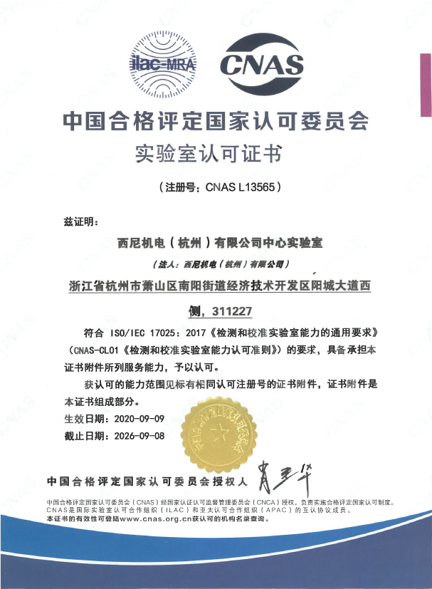 近期,西尼中心實(shí)驗(yàn)室——“拉力實(shí)驗(yàn)中心”和“電磁兼容實(shí)驗(yàn)中心”,獲得了中國(guó)合格評(píng)定國(guó)家認(rèn)可委員會(huì)(CNAS)授予的實(shí)驗(yàn)認(rèn)可證書(shū),標(biāo)志這西尼機(jī)電的研發(fā)檢測(cè)能力更上一個(gè)層次,將對(duì)產(chǎn)品質(zhì)量控制、創(chuàng)新研發(fā)提供更高質(zhì)量、更精準(zhǔn)的技術(shù)保障。
