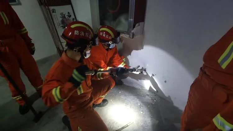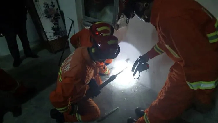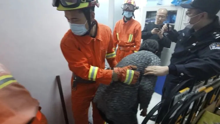 3、消防救援人員經(jīng)過(guò)30多分鐘的緊急破拆出營(yíng)救出口,次日凌晨1時(shí)許將7名被困人員依次救出,并移交120。