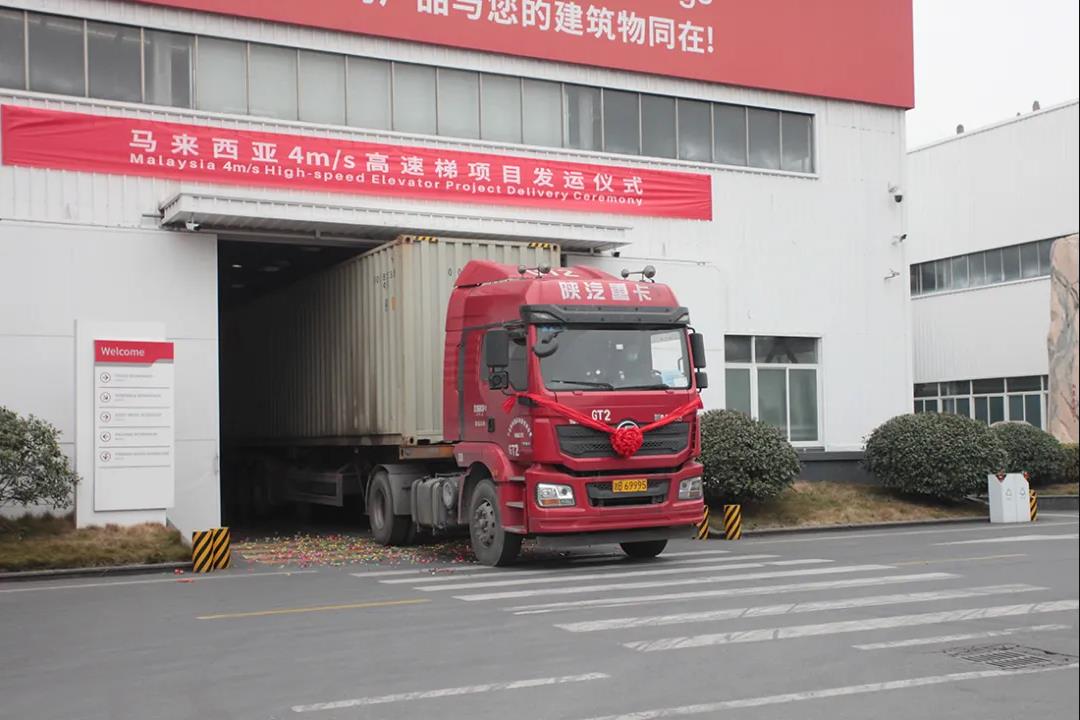 時(shí)光不負(fù)奮斗者,長(zhǎng)風(fēng)萬里啟新程。1月8日,出口馬來西亞16臺(tái)4M/S高速梯順利發(fā)運(yùn)并在西尼南陽廠區(qū)舉行了熱烈簡(jiǎn)短的發(fā)運(yùn)儀式。